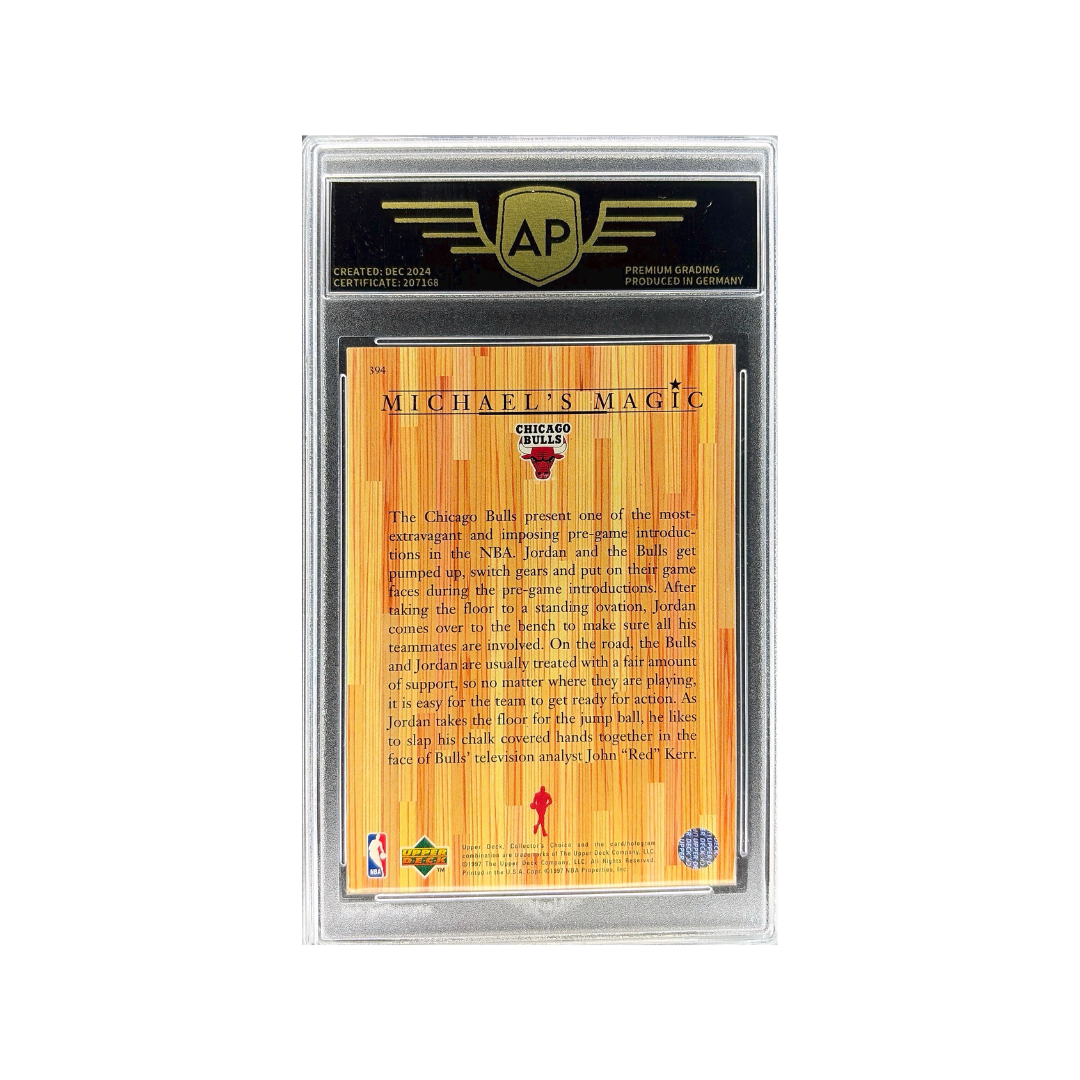 Classic Michael Jordan insert card from the 1997–98 Upper Deck Collector's Choice set, featuring the "Michael's Magic" theme celebrating the legendary Chicago Bulls superstar. Jordan is widely considered the greatest basketball player of all time and dominated the NBA throughout the 1990s. This card captures him during the iconic Bulls dynasty era, one of the most celebrated periods in basketball history. A great collectible from the late-90s basketball card boom and a must-have for fans of Michael Jordan and NBA history.