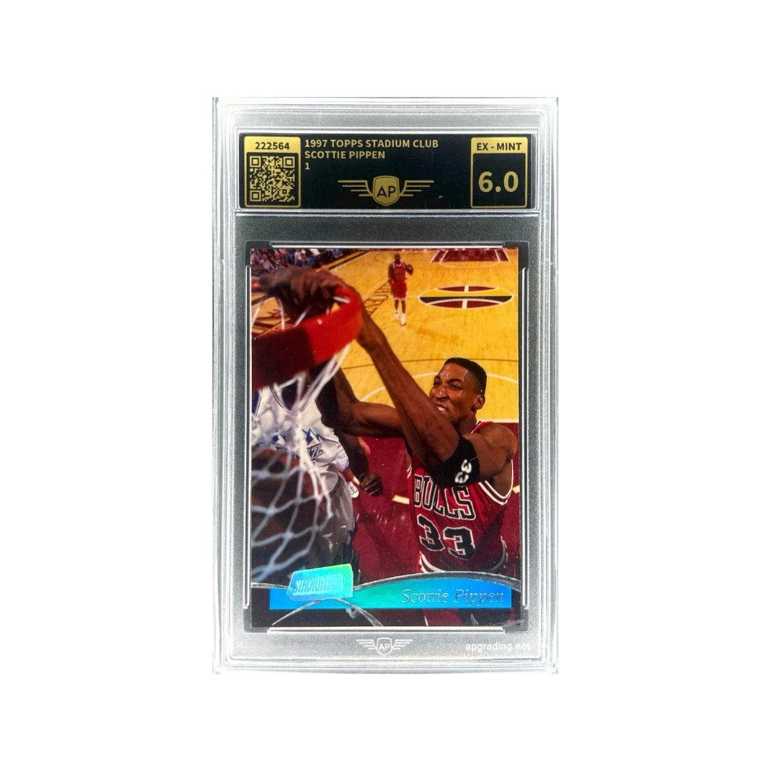 Die Stadium Club Serie ist bekannt für ihre hochwertige Fotografie und actionreichen Spielszenen. Diese Karte zeigt Pippens Athletik und seine starke Präsenz unter dem Korb – Eigenschaften, die ihn zu einem der besten Forwards der NBA-Geschichte machten und ihm einen Platz in der Basketball Hall of Fame einbrachten.