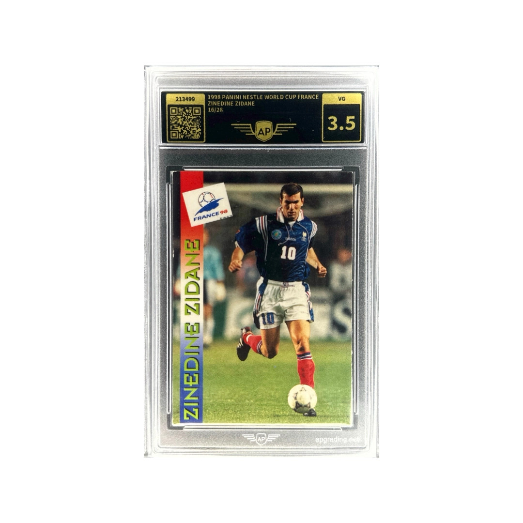 A classic collectible from the 1998 Panini Nestlé World Cup France series featuring football legend Zinedine Zidane. Released during the iconic 1998 FIFA World Cup hosted in France, this card captures Zidane at the beginning of his rise to global superstardom. That tournament would become historic, as Zidane led France to their first World Cup victory and cemented his place among football's greatest players.