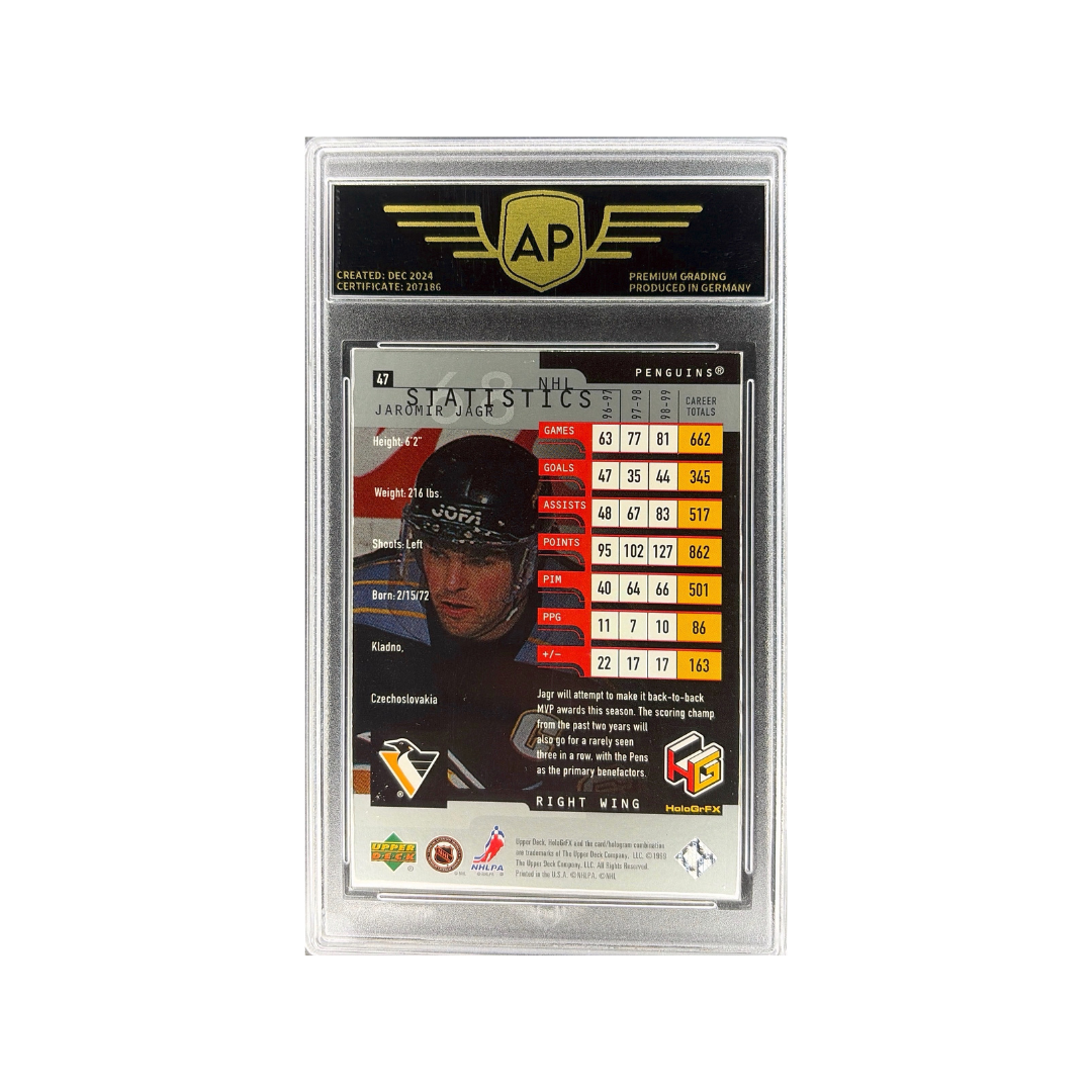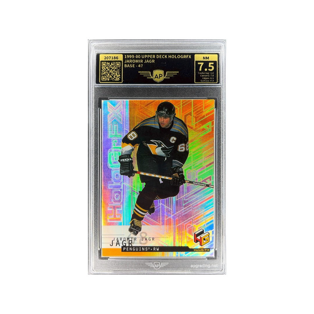 Auffällige Base-Karte aus der 1999–00 Upper Deck HoloGrFX Serie mit Jaromir Jagr.
