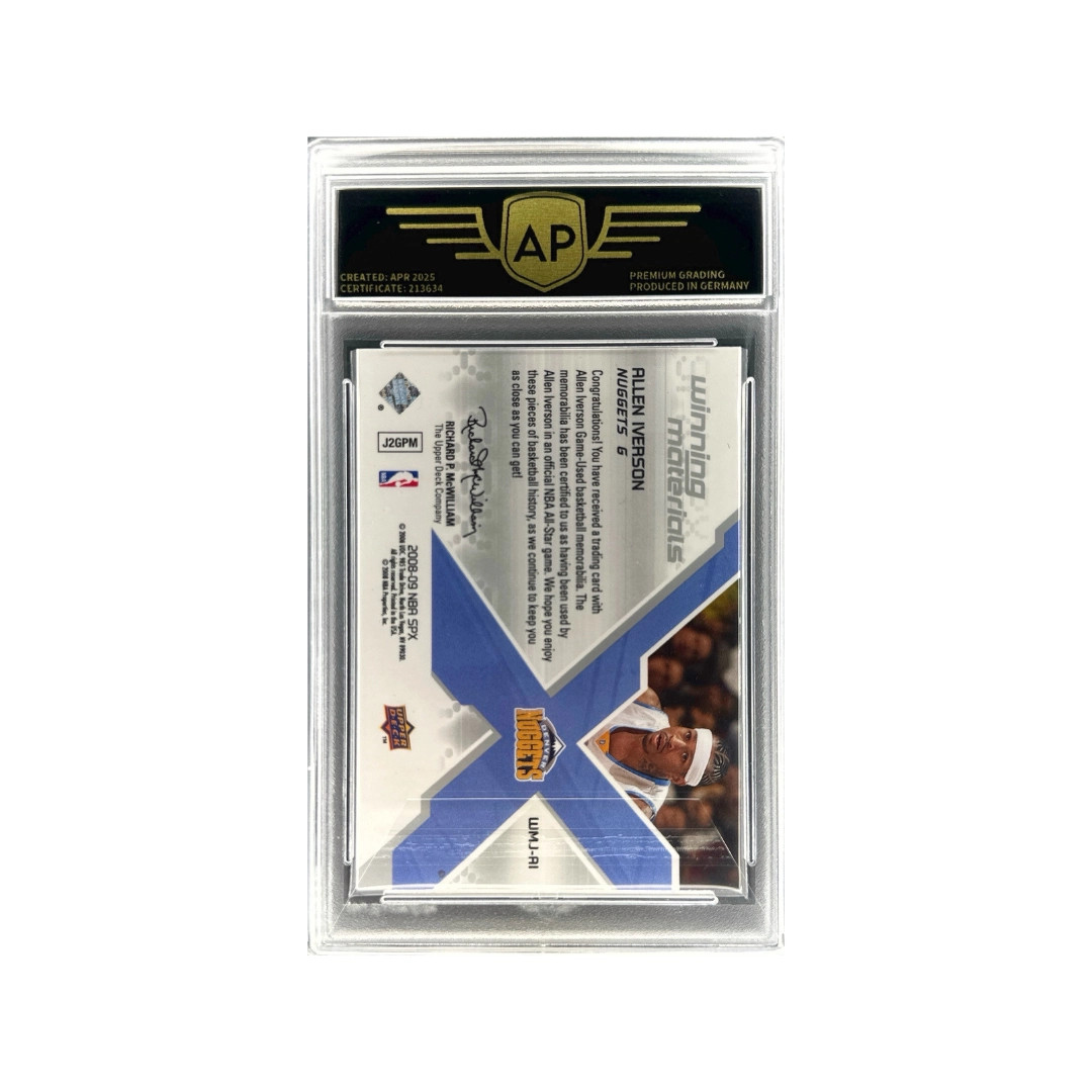 Die Karte gehört zur Winning Materials Jersey Insert-Serie und enthält ein originales Spieler-Trikotstück (Game-Used Jersey) von Allen Iverson. Solche Memorabilia-Karten sind besonders beliebt, da sie echte Stücke von getragenem Spieler-Material enthalten.