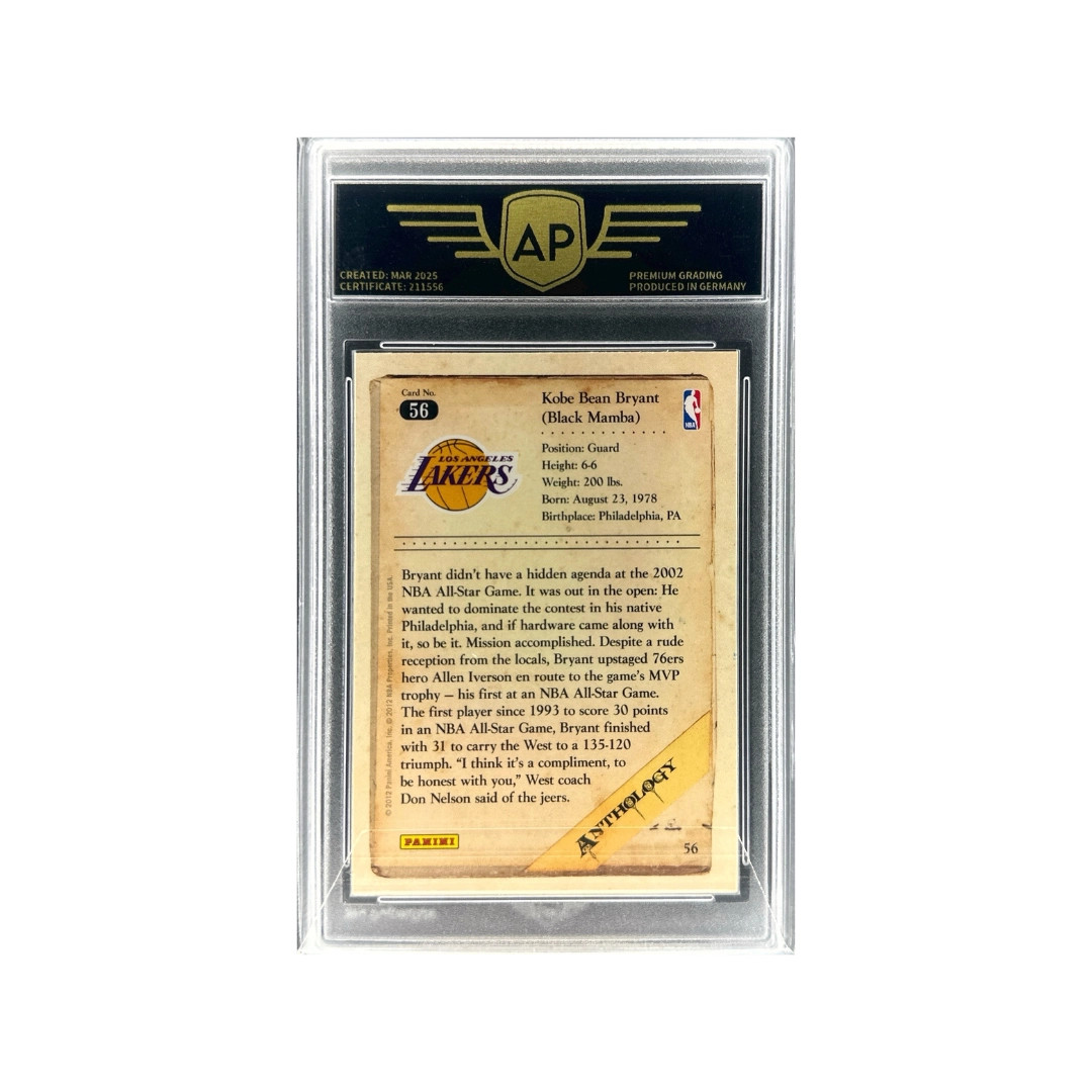 This card from the 2012–13 Panini Kobe Anthology set features Kobe Bryant during his legendary career with the Los Angeles Lakers. The Kobe Anthology series was produced as a dedicated tribute collection celebrating Bryant's achievements and memorable moments throughout his career. Widely regarded as one of the greatest basketball players of all time, Bryant built a legacy defined by scoring excellence, fierce competitiveness, and five NBA championships. Cards from this special anthology release remain highly collectible among basketball fans and collectors. A graded 8.5 (NM-MINT) example represents a strong collectible honoring one of the NBA's most iconic players.