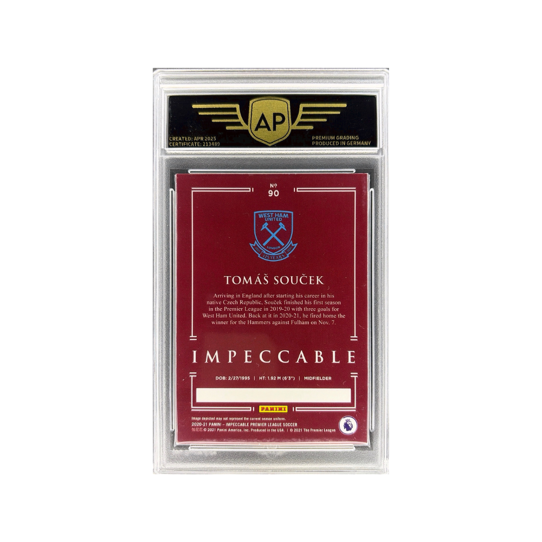 Tomáš Souček patrí medzi najspoľahlivejších a fyzicky najsilnejších stredopoliarov v Premier League. Vďaka svojej hre hlavou, pracovnej morálke a schopnosti skórovať sa stal kľúčovým hráčom West Ham United. Jeho výkony z neho robia obľúbeného hráča medzi fanúšikmi aj odborníkmi. Limitovaná karta zo série Panini Impeccable zdôrazňuje jeho význam aj zberateľskú hodnotu.