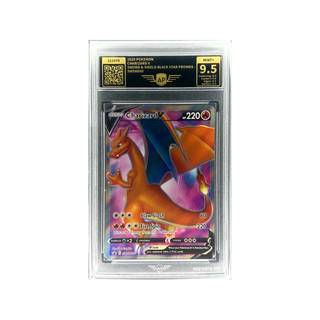 As a Basic Pokémon V, it has 220 HP and attacks Claw Slash (80) and Fire Spin (220). Charizard cards are among the most collected in the Pokémon hobby.