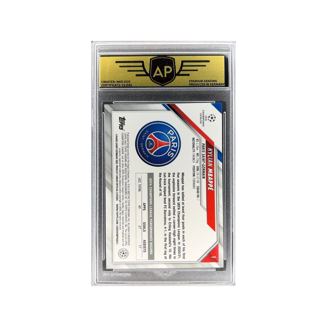 Tato karta 2021–22 Topps Chrome UEFA Champions League Base (#1) ho zobrazuje v dresu PSG.