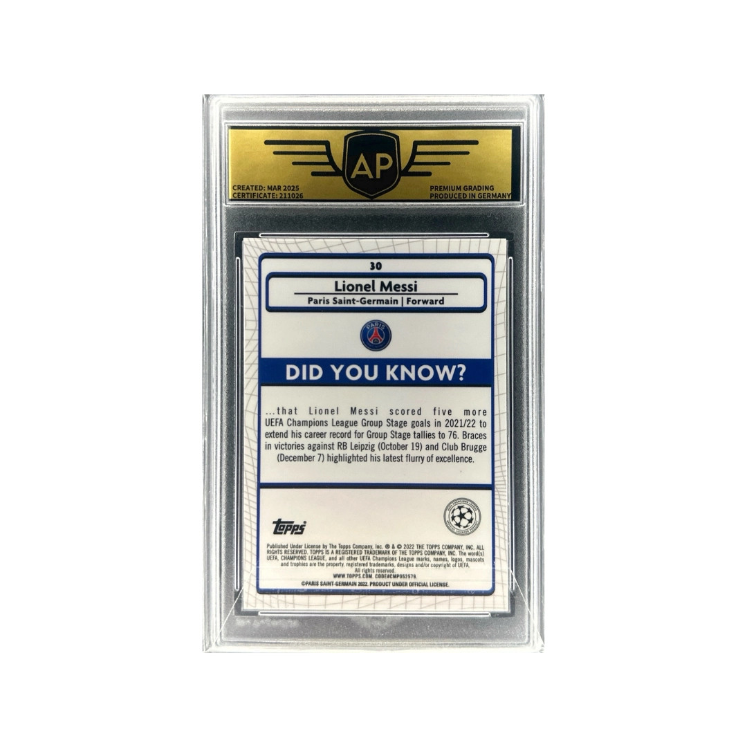 2021–22 Topps Merlin UCL – Lionel Messi #30 – AP 10 (Gem Mint)