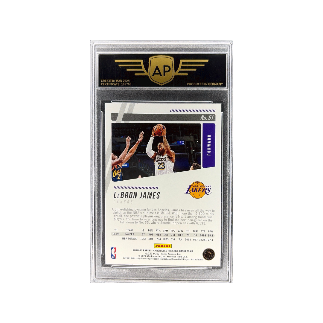 Această carte 2022–23 Panini Chronicles – Rookies & Stars îl prezintă pe LeBron în perioada sa la Los Angeles Lakers, unde continuă să performeze la nivel de elită chiar și în fazele târzii ale carierei. Subsetul Rookies & Stars evidențiază atât vedete consacrate, cât și talente emergente, confirmând statutul lui LeBron printre cei mai mari jucători ai erei sale.