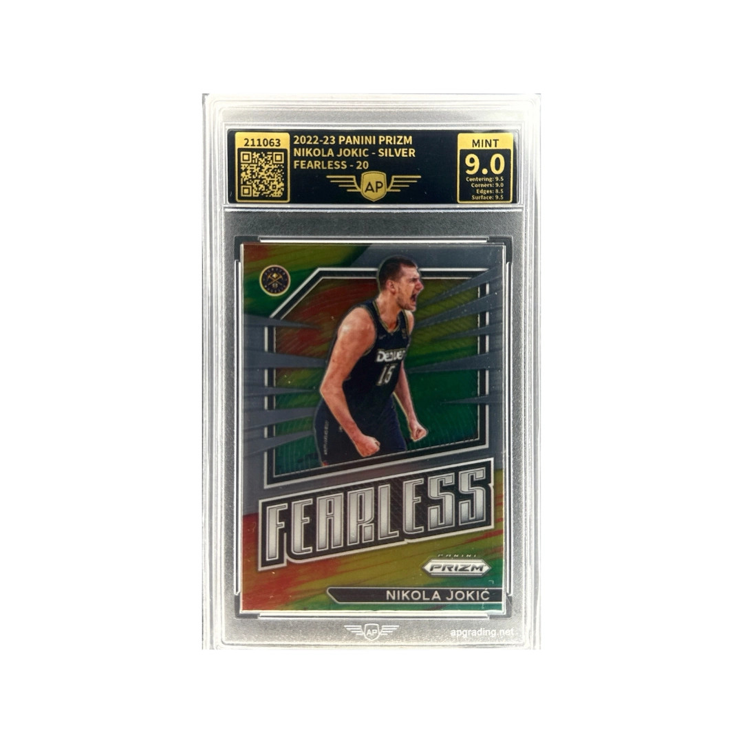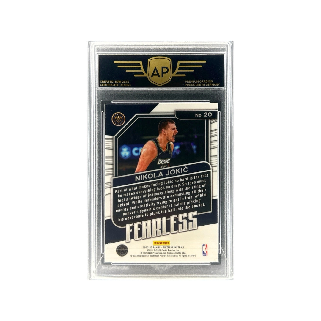 2022–23 Panini Prizm – Nikola Jokić Silver Fearless #20 – AP 9.0 (MINT)