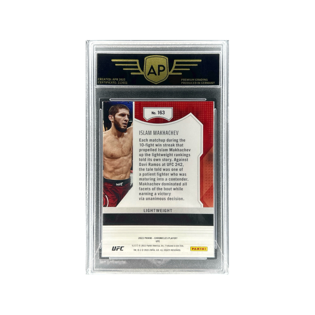Diese Karte aus dem 2022 Panini Chronicles UFC Set zeigt Islam Makhachev, einen der dominantesten Kämpfer im modernen Mixed Martial Arts und einen Top-Athleten der UFC-Leichtgewichtsklasse.