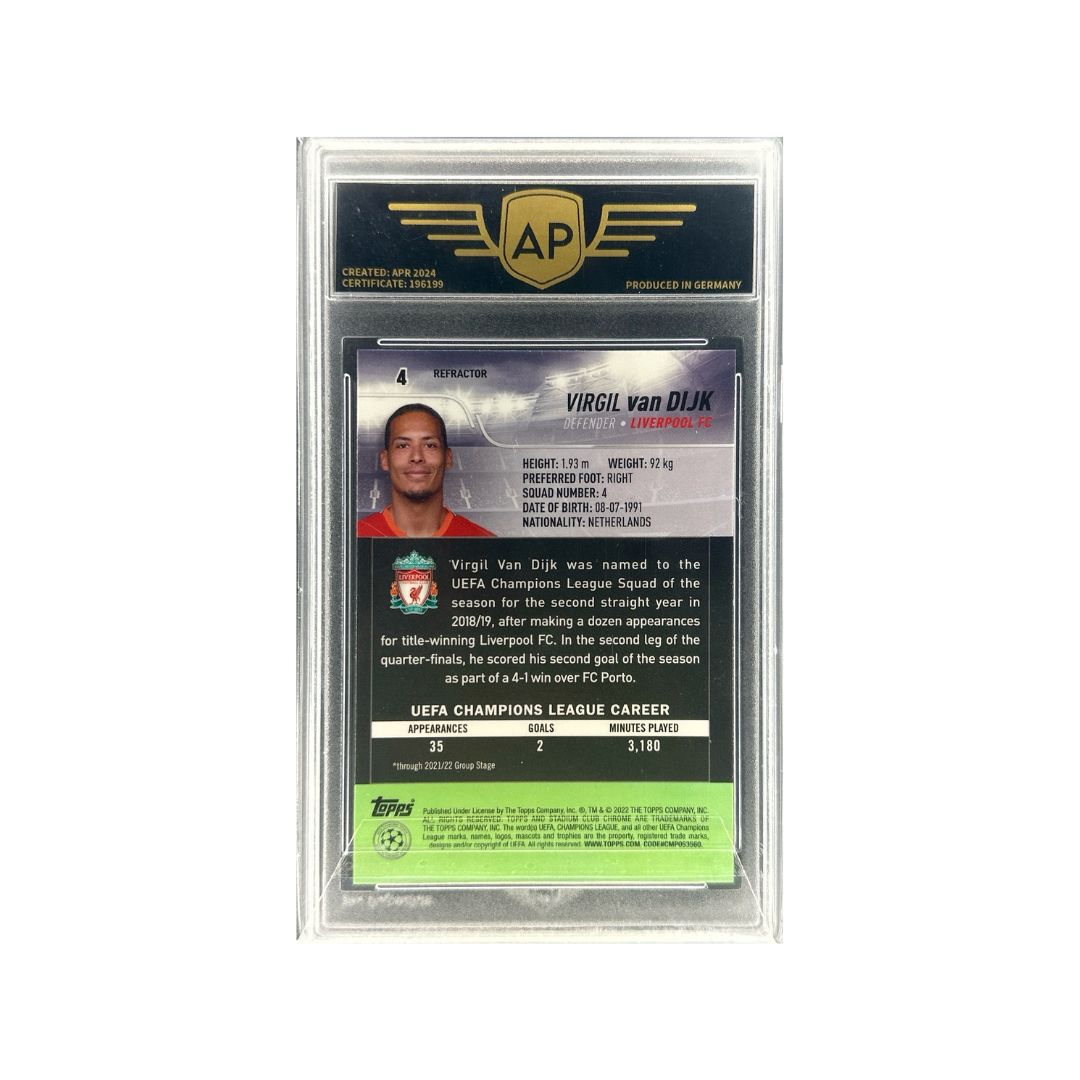Tato Refractor karta Virgila van Dijka spojuje moderní prémiový design s aurou elitního obránce a představuje hodnotný přírůstek do každé seriózní fotbalové sbírky.