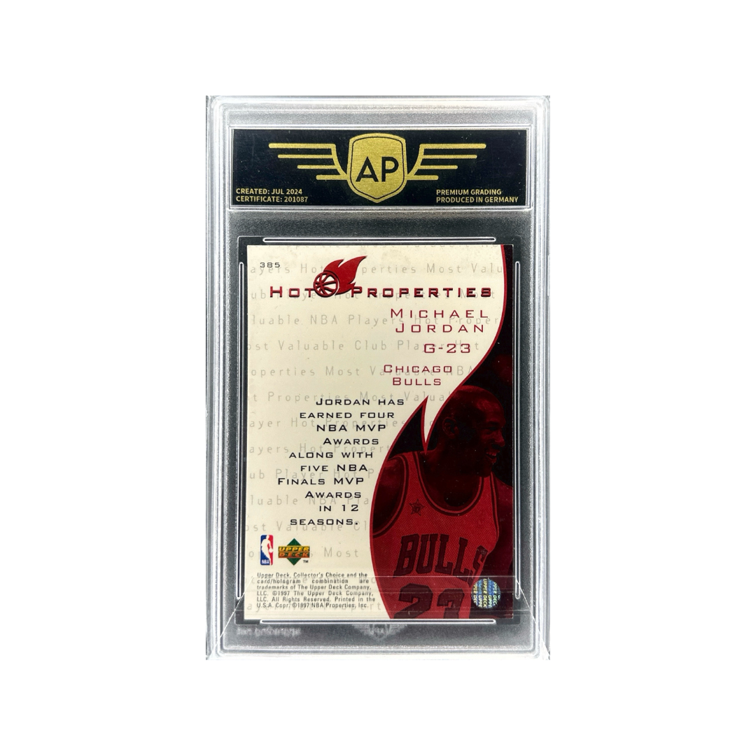 Esta carta muestra el inmenso impacto de Michael Jordan como cuatro veces MVP de la NBA y cinco veces MVP de las Finales durante su legendario tiempo con los Chicago Bulls. Destaca las extraordinarias anotaciones, premios y dominio de Jordan en la cancha durante 12 temporadas memorables, capturando la esencia de su era Hot Properties. Cada detalle de su carrera galardonada está preservado, convirtiendo esta carta en un imprescindible para fanáticos y entusiastas del baloncesto que admiran a uno de los mejores jugadores de la historia de la NBA.
