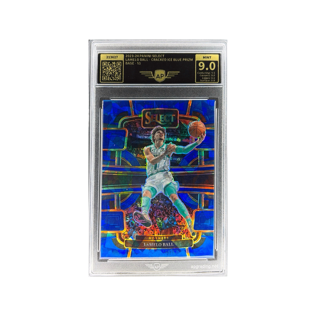 2023-24 Panini Select – LaMelo Ball Cracked Ice Blue Prizm Base 53 (9.0 MINT)